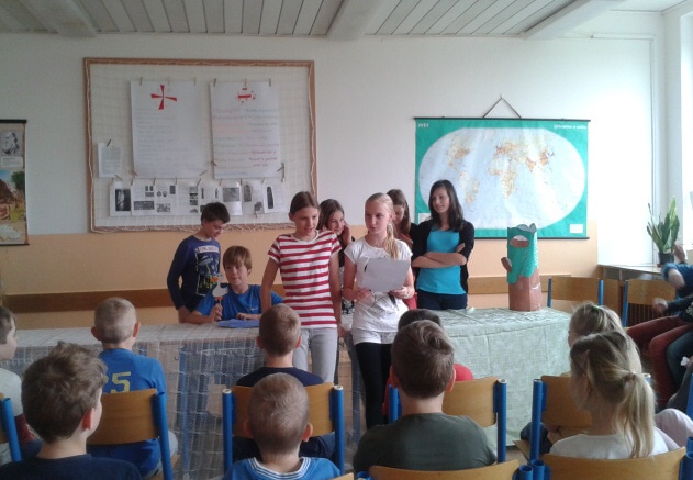 Žáci 6.B si během měsíce května nastudovali anglický příběh The Story of Chicken Licken. Divadlo v anglickém jazyce zahráli mladším spolužákům z 1.stupně. Pochvala patří všem žákům, kteří k nácviku přistupovali zodpovědně a jmenovitě Gabriele Trnkové, která vytvořila ilustrované postavičky příběhu.