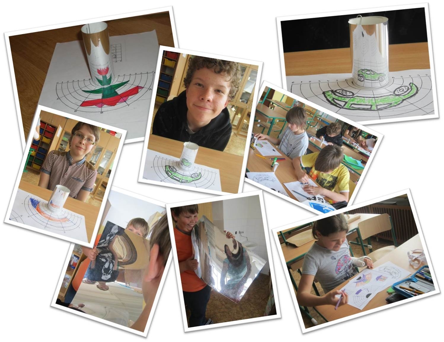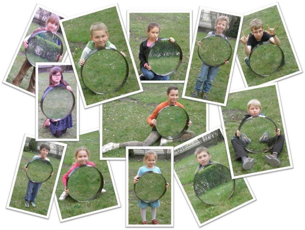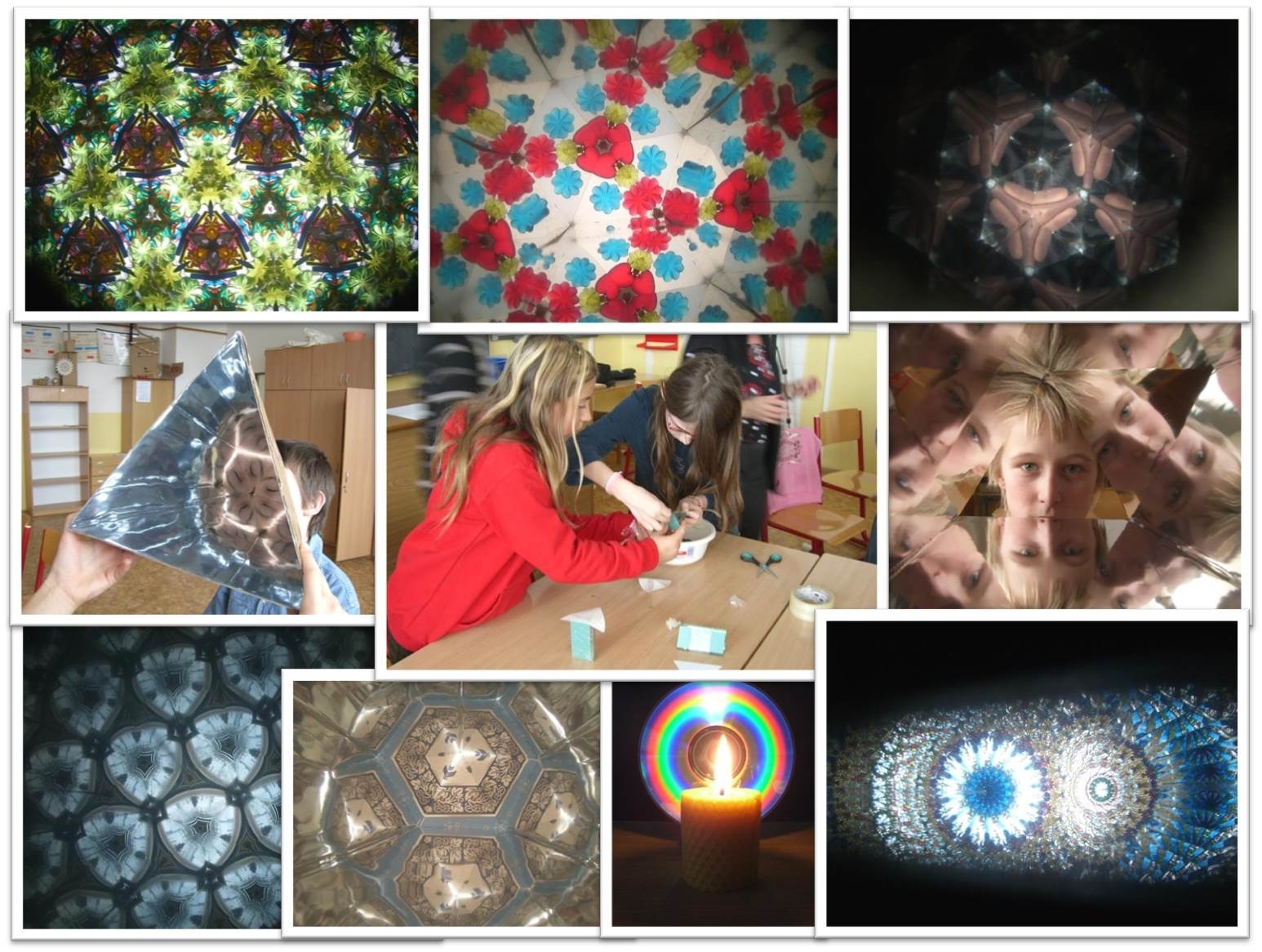polská strana: optické hračky (nekonečný odraz se světly, krabice se zrcadly, trubková dráha pro závod „fazolí“, šablony na optické hračky ze zrcadlové fólie), matematické náměty (Souměrnost a optika – celé soubory na počítač)