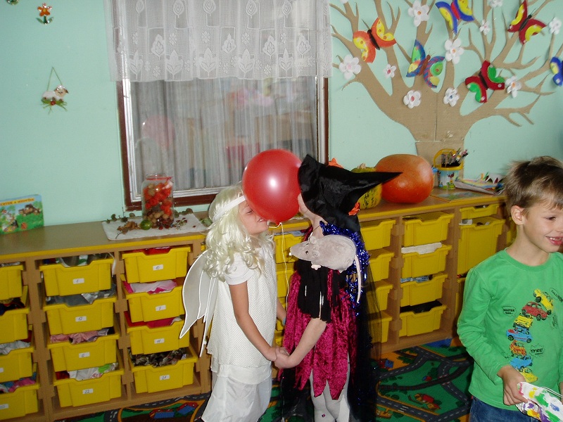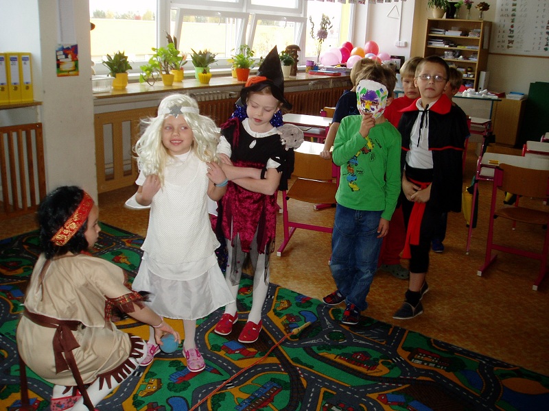 Už třetím rokem se děti bavily Halloweenským odpolednem. Pro vytvoření dobré atmosféry je třeba masek a touha po něčem tajemném. Děti to velmi dobře věděly, a proto se spolu s čarodějnicí Horymírou kouzlem dostaly ke starému, opuštěnému vězení. Zde museli uvařit tři lektvary zapomnění pro tři popletené čarodějnice. Zcela potichu a za pomoci lana procházely sklepením plným ošklivých pavouků, pavučin, špíny a jiné havěti. A také si vyprávěly s čarodějnicí Horymírou starý příběh plný duchů a věc,í které se samy otevírají – třeba kniha. Zase příští rok.