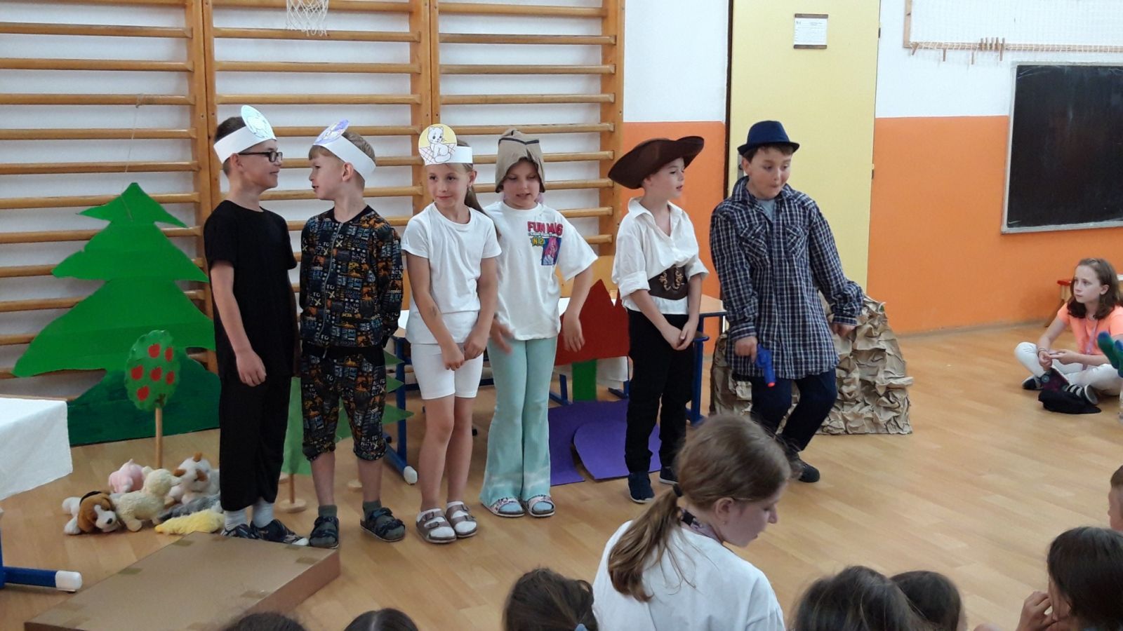 V pondělí 19. června vystoupil kroužek školní družiny DRAMAŤÁK, a to hned dvakrát. Nejprve pro všechna družinová oddělení, potom pro rodiče dětí z kroužku. Holky a kluci se představili s recitačním pásmem o svých jménech a vlastně tak trochu o sobě. Následně zahráli klasickou pohádku „Zvířátka a loupežníci“. Závěr vystoupení patřil „Červené Karkulce“, ovšem v netradičním pojetí. Děti měly radost, že mohou ukázat, co se naučily. A snad potěšily malé i velké diváky.