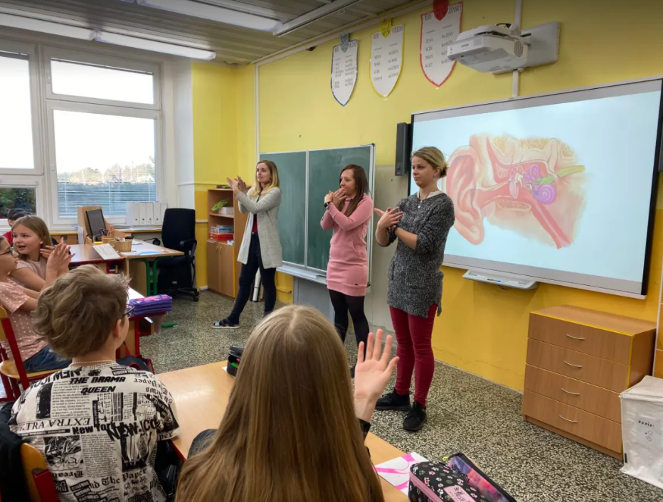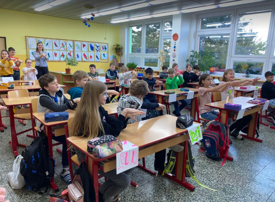 Žáci 6.B zase změnili jednu z učeben v divadlo s jevištěm, kde zahráli krátkou anglickou pohádku Chicken Licken, a v hlediště, kde postupně usedli žáci tříd 3.A, 3.B a 3.C. Obnovili tak tradici představení v angličtině, která žáci 2. stupně školy zahrají pro mladší děti z 1. stupně.