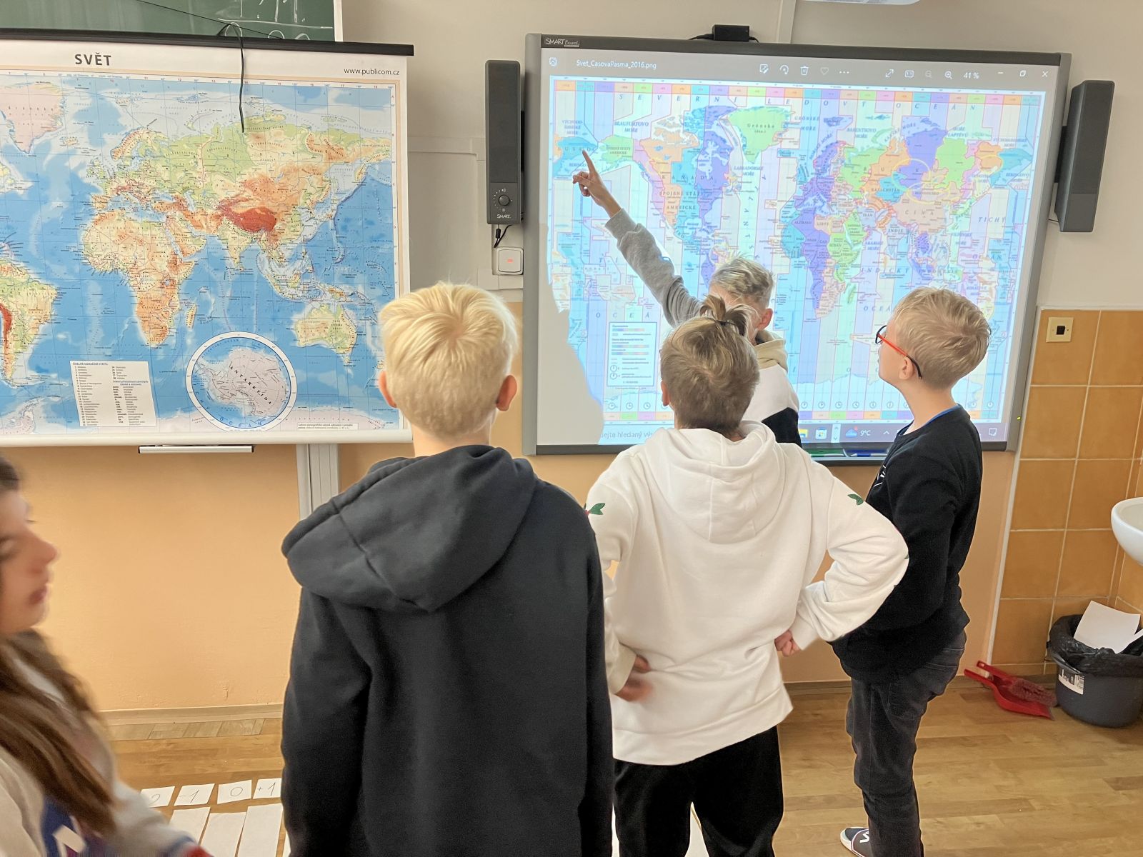 Kolik je hodin v New Yorku nebo třeba v Tokiu, když máme v Brně 8:00? To zjišťovali žáci 6. ročníků při tvorbě modelu časových pásem. A stačil jim k tomu obyčejný toaletní papír. V hodinách zeměpisu si žáci vytvořili časová pásma s pomocí map a svých nově nabytých znalostí a poté zjišťovali, jaký je zrovna čas v různých městech světa. Město následně zařadili do správného časového pásma a poté si o něm na tabletu našli další zajímavé informace. Jak se jim dílo povedlo, se můžete podívat ve fotogalerii.