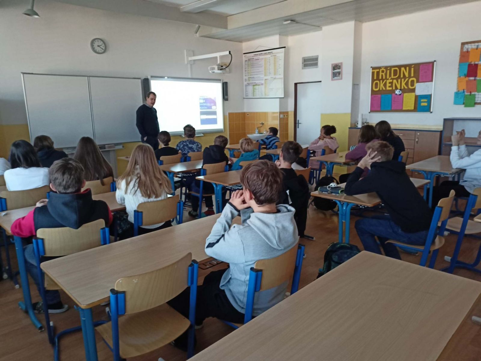 V rámci projektu Bankéři do škol měli žáci 8. ročníku možnost setkat se s experty z praxe, kteří jim přišli prezentovat poznatky týkající se finanční gramotnosti a kyberbezpečnosti. Dobrovolníci měli připravenou prezentaci a aktivity pro žáky, díky kterým jim lépe mohli vysvětlit potřebu chránit si svá data nebo jak rozpoznat, že se jedná o podvodníky, kteří nám chtějí zcizit finance z našeho bankovního účtu.