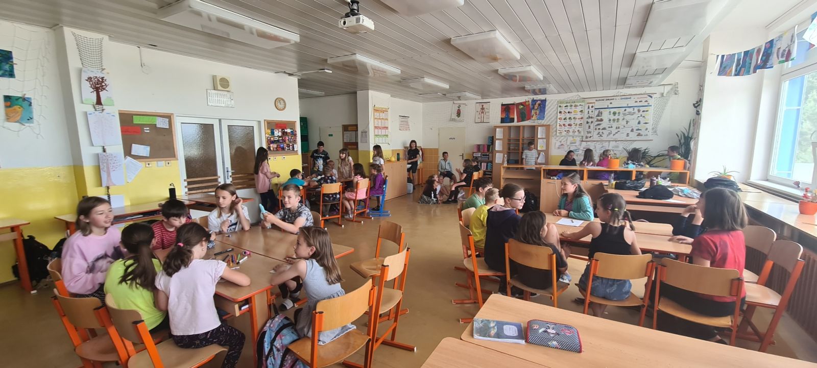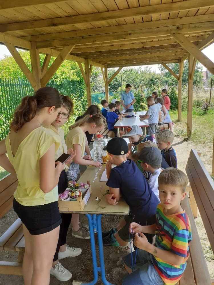 V úterý 20.6.2023 si žáci 7.A v rámci hodiny přírodopisu připravili výukový program pro své mladší spolužáky ze tříd 2.B a 2.C. Na jednotlivých stanovištích se druháci dozvěděli různé informace o rostlinách, které pěstujeme na školní zahradě, o pokojových rostlinách a stromech, poznávali bylinky či koření po čichu, ochutnali čaje z bylin a zahráli si nějaké hry.