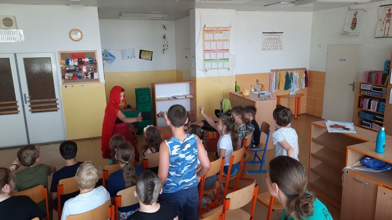 Na závěr školního roku pozvali žáci třídy 5. A své mladší spolužáky z 2. a 3. ročníku na krátké divadelní představení v anglickém jazyce, které si pro ně nacvičili. Jednalo se o známou pohádku Red Riding Hood (O červené Karkulce), která se v jejich podání velmi vydařila. Děkujeme všem páťákům, kteří se do představení zapojili, a těšíme se na další podobné aktivity v příštím školním roce.