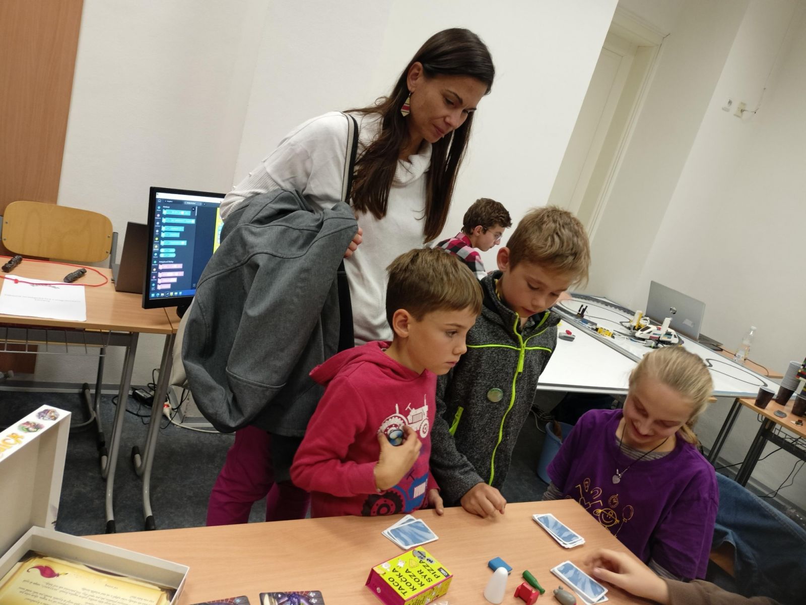 Již druhým rokem v říjnu u nás v rámci akce Code Week proběhl seminář pro zájemce o programování ve Scratchi (vizuální programovací jazyk). Zaměstnanci firmy SAP se nejprve v pondělí 16. 10. věnovali čtyři vyučovací hodiny 18 žákům 8. a 9.ročníku, kteří již byli se Scratchem seznámeni v rámci běžných vyučovacích hodin. Proto je čekala analýza a řešení dvou obtížnějších úkolů zaměřených na práci s proměnnými a bloky s parametry.