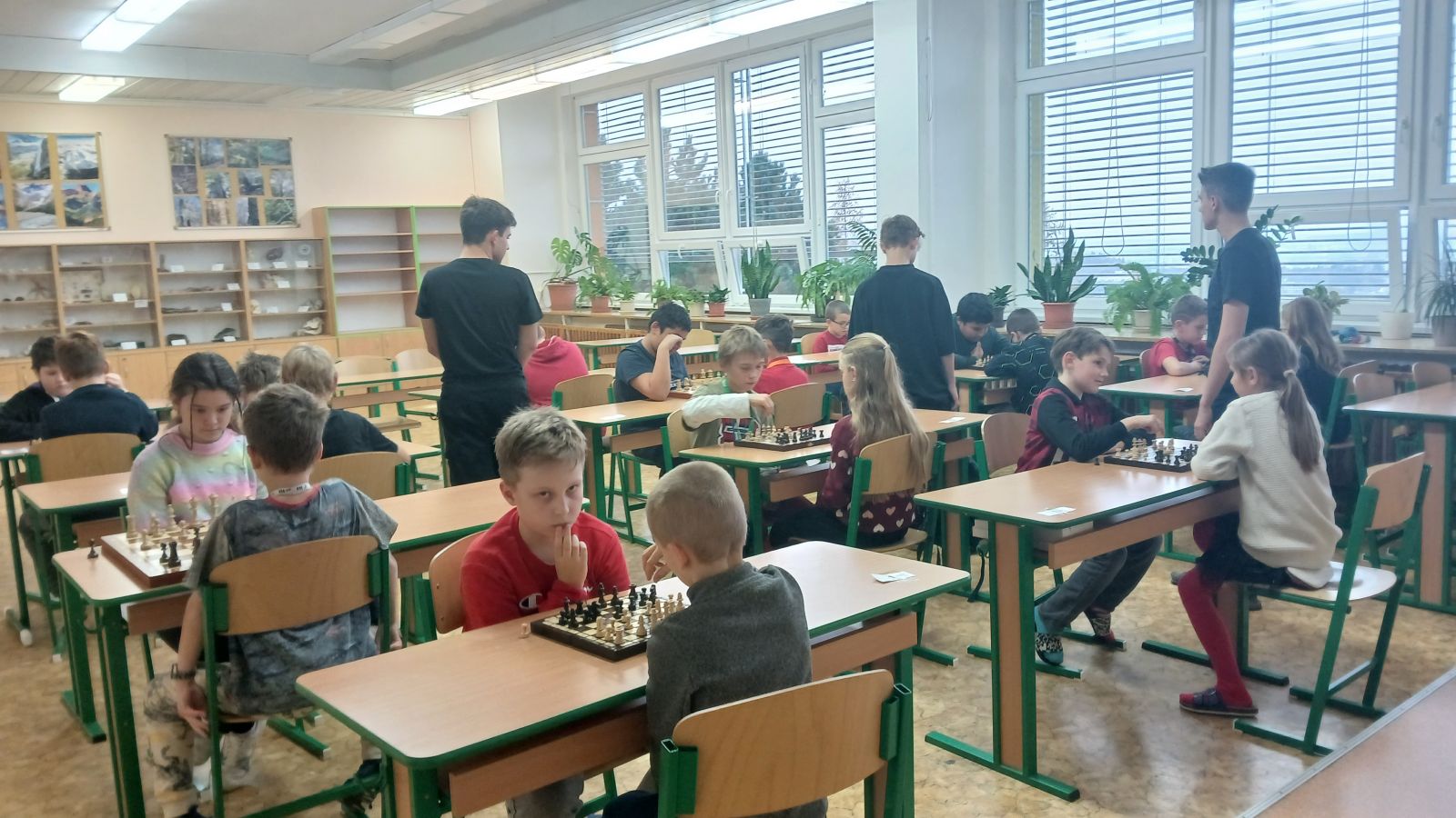 Dva týmy žáků naší školy se ve čtvrtek 28. 11. zúčastnily městského přeboru škol v šachu. Žáci 6. – 9. tříd Jan Filip, Mirek Veselík, Daniel Shaker a David Barna si vedli výborně a obsadili 5. místo z celkových 12 týmů ve své kategorii a podařilo se jim porazit i dva týmy výběrových gymnázií.