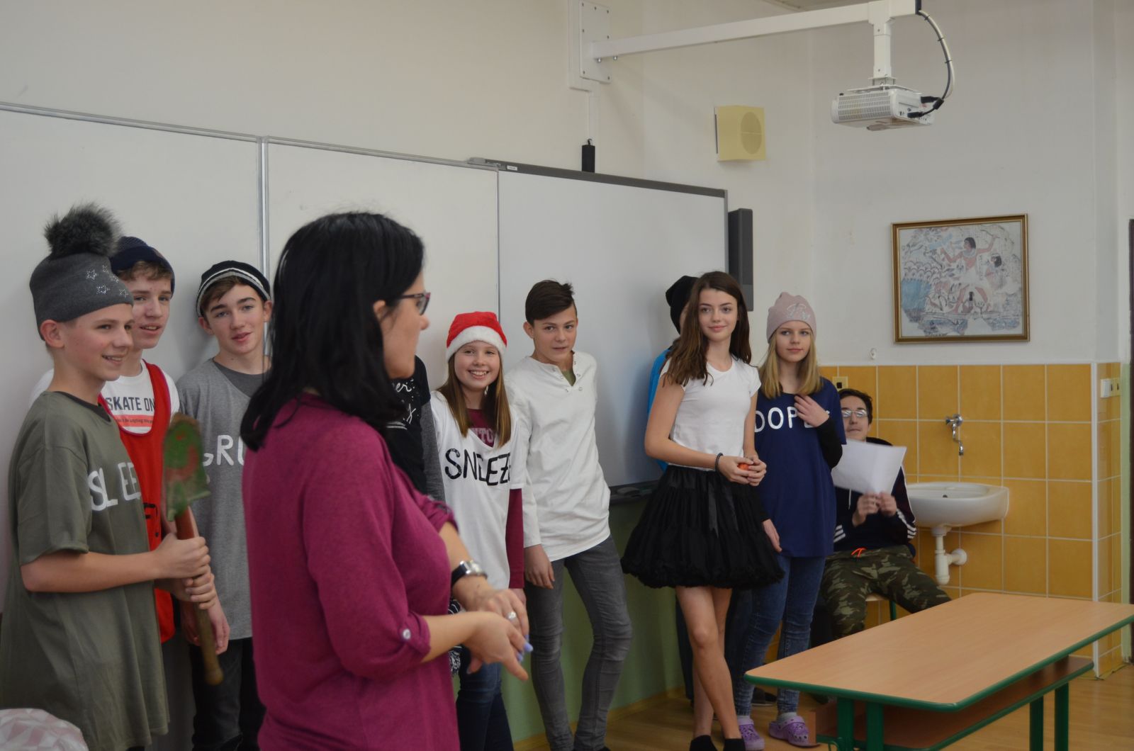 Inspirováni návštěvou anglického divadelního představení nastudovali naši osmáci v hodinách AJ anglickou verzi pohádky o Sněhurce (SnowWhite). V několika reprízách ji zahráli svým spolužákům většinou ze tříd 1. stupně naší školy. Několik fotografií z představení můžete vidět v naší fotogalerii.