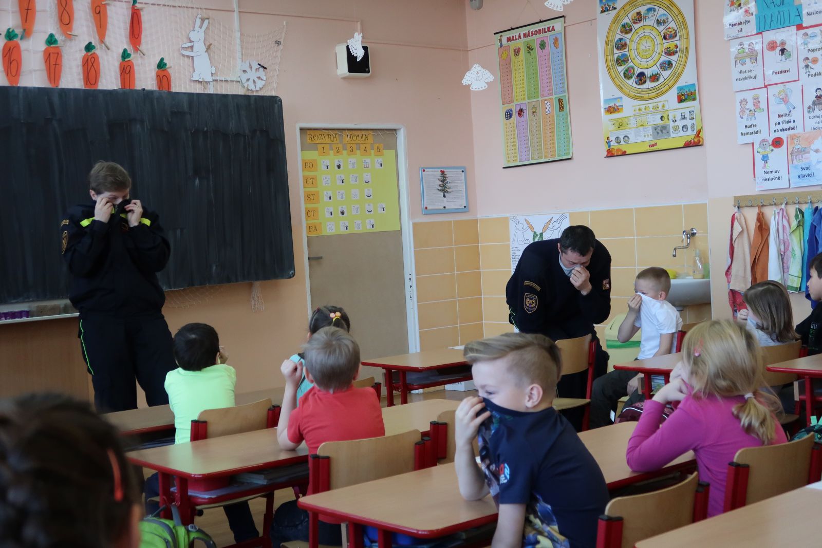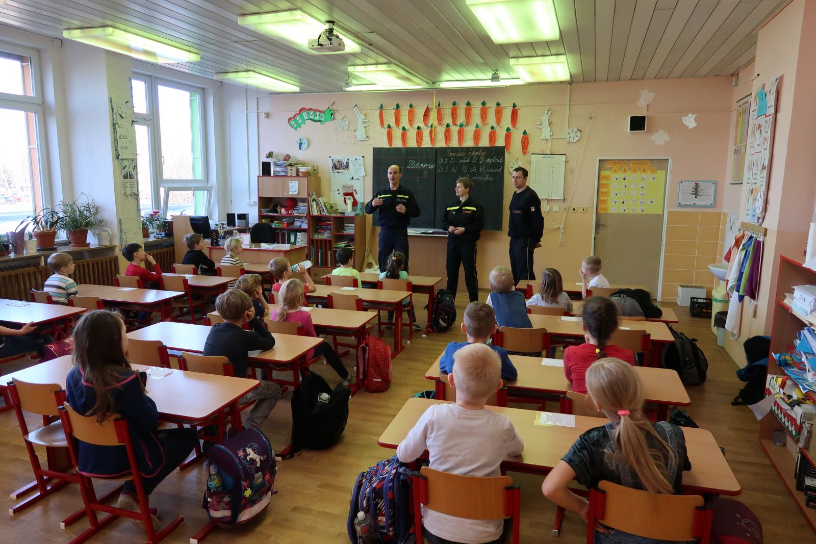 Děti druhých tříd absolvovaly na naší škole výchovně preventivní program Hasík. Během dvou hodin se dozvěděly spoustu zajímavých a poučných informací, které nejen jim, ale i jejím blízkým mohou zachránit život. Při první návštěvě si děti zopakovaly důležitá telefonní čísla. Na koho se mají obrátit, kdyby byly v nouzi, včetně toho, jak by mělo správně vypadat takové oznámení. Všichni zbystřili, když pan hasič ukázal vybavení nutné při zásahu u požáru a předvedl s pár dobrovolníky, jak taková záchrana může vypadat. Důležité bylo, aby si uvědomily, že se v masce, do které je pouštěn kyslík, mění jeho hlas a nebály se ho. V další lekci nás hasiči seznámili se znaky požáru a jak postupovat, když ho nejmíň čekáme. Tedy co dělat, když mě probudí štiplavý kouř. S nadšením děti pozorovaly, co pan hasič říkal a názorně ukazoval. Vyjmenováním nejrůznějších zařízení domácnosti, které potřebují elektrický proud, si uvědomily, co všechno by mohlo být potencionální nebezpečí.