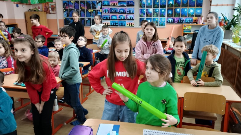 Potom jsme měli český jazyk. Řekli jsme předškolákům slovo a oni měli vytleskat, kolik má slabik a poznat první písmeno. Ještě jsme pracovali na interaktivní tabuli, kde děti plnily různé úkoly. Nakonec jsme měli výtvarnou výchovu. Pomohli jsme jim vyrobit houpacího sněhuláka. Šimon Rajsigl ze 4.D